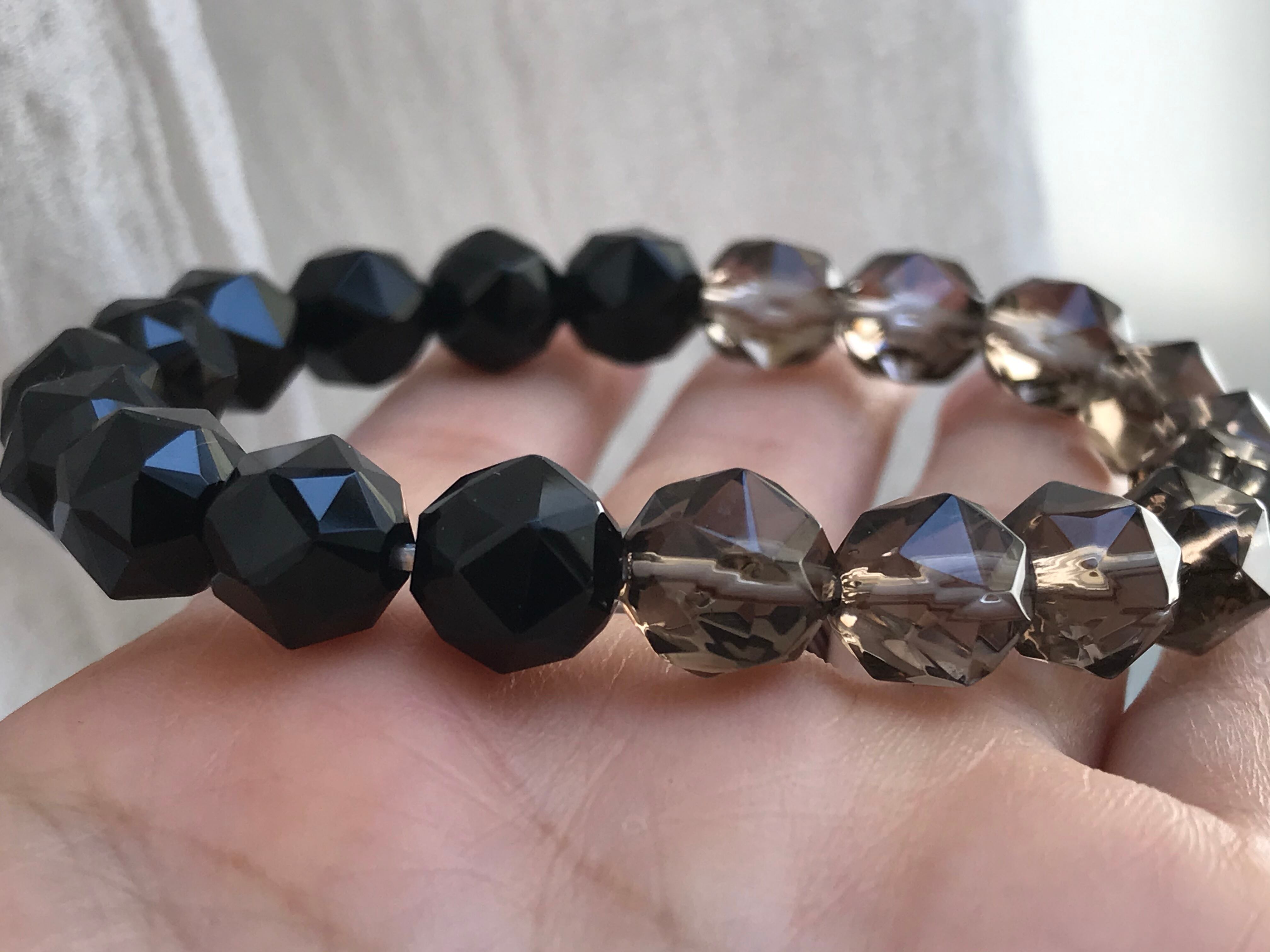 漆黒のチベットモリオンとライトカラーのスモーキークォーツハーフandハーフ braceletです♡