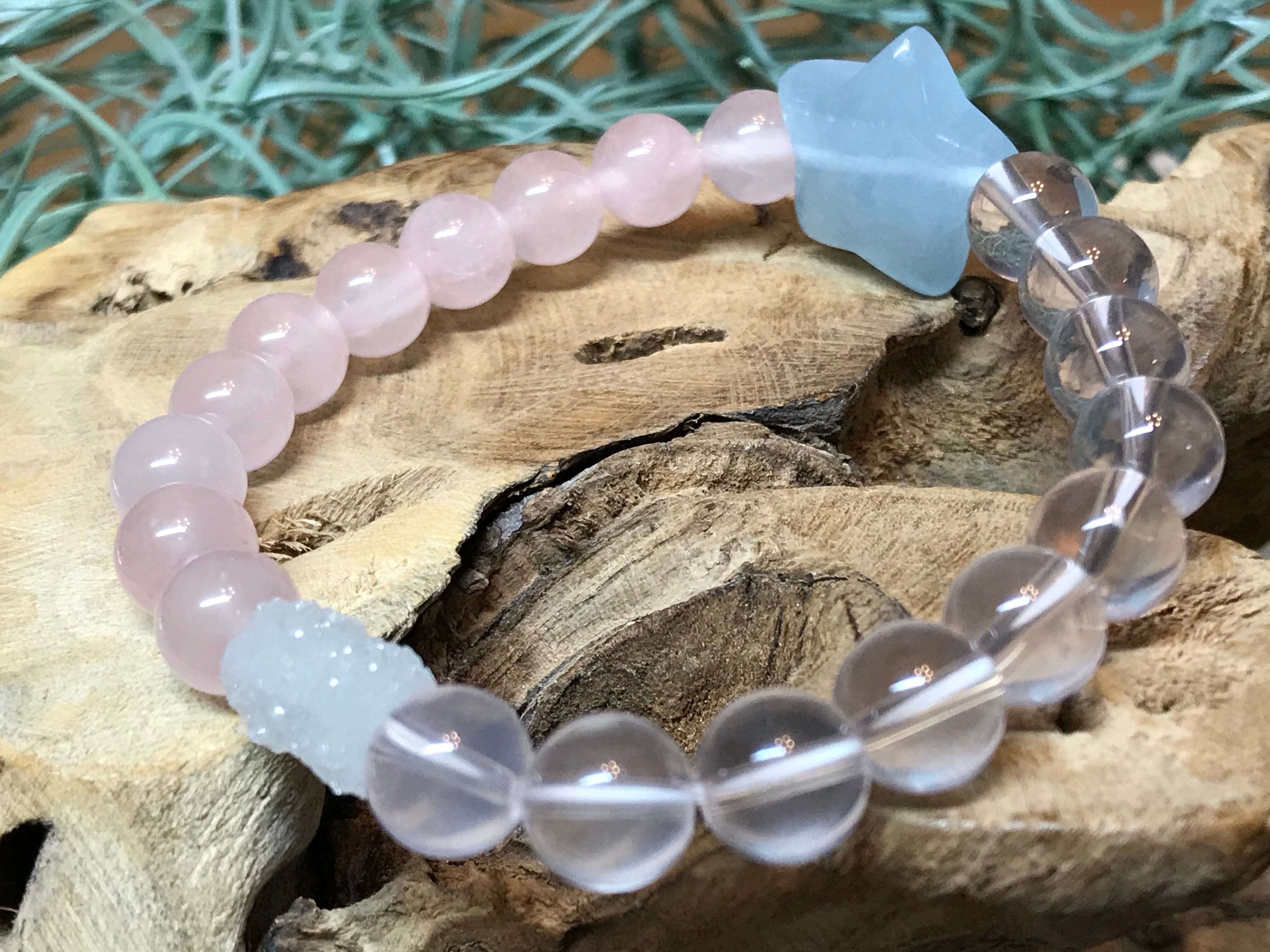 アクアマリン⭐︎star⭐︎×ローズクォーツbracelet♡