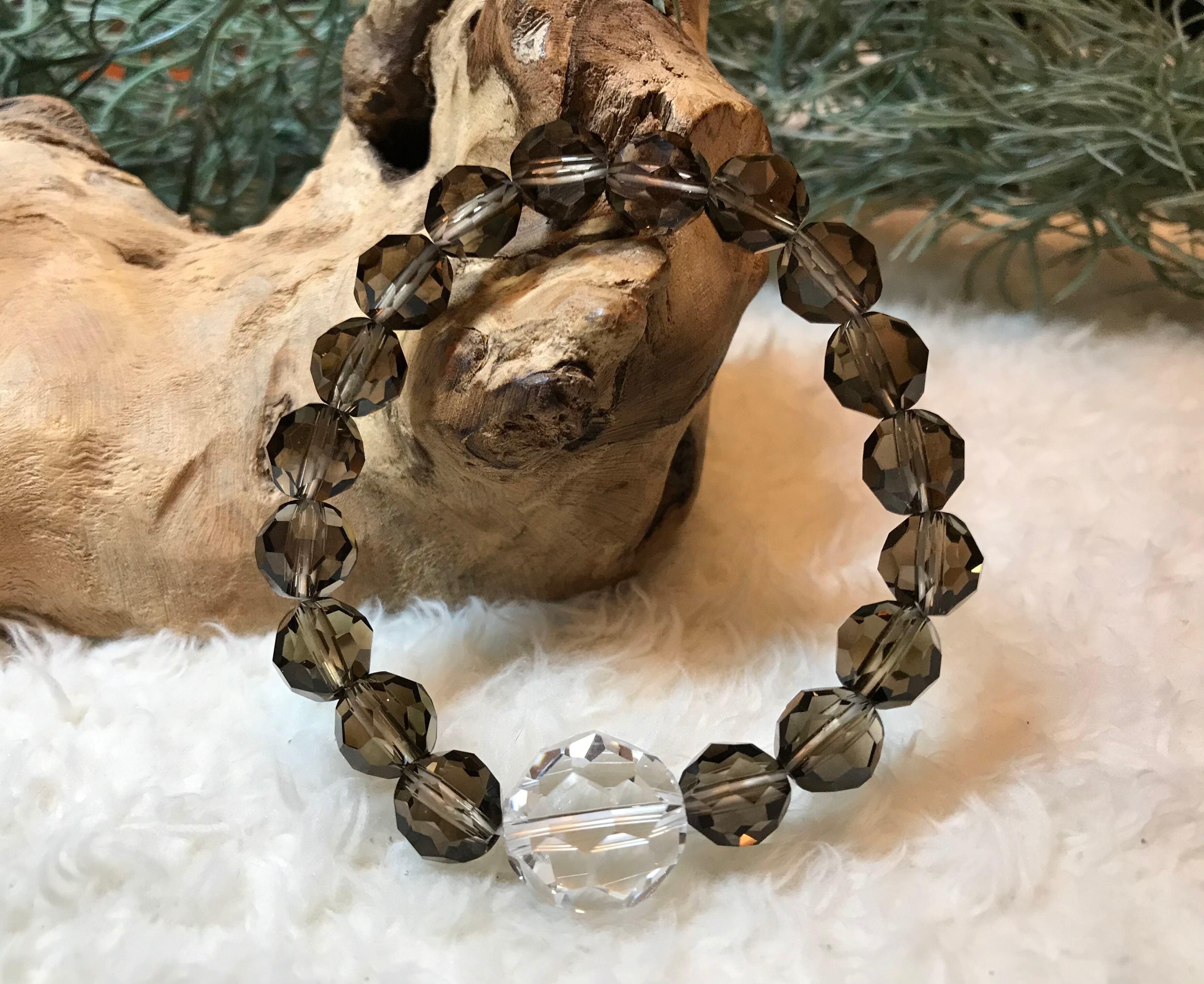 希少カット*バッキーボールカット水晶×バッキーボールカットスモーキークォーツ bracelet♡