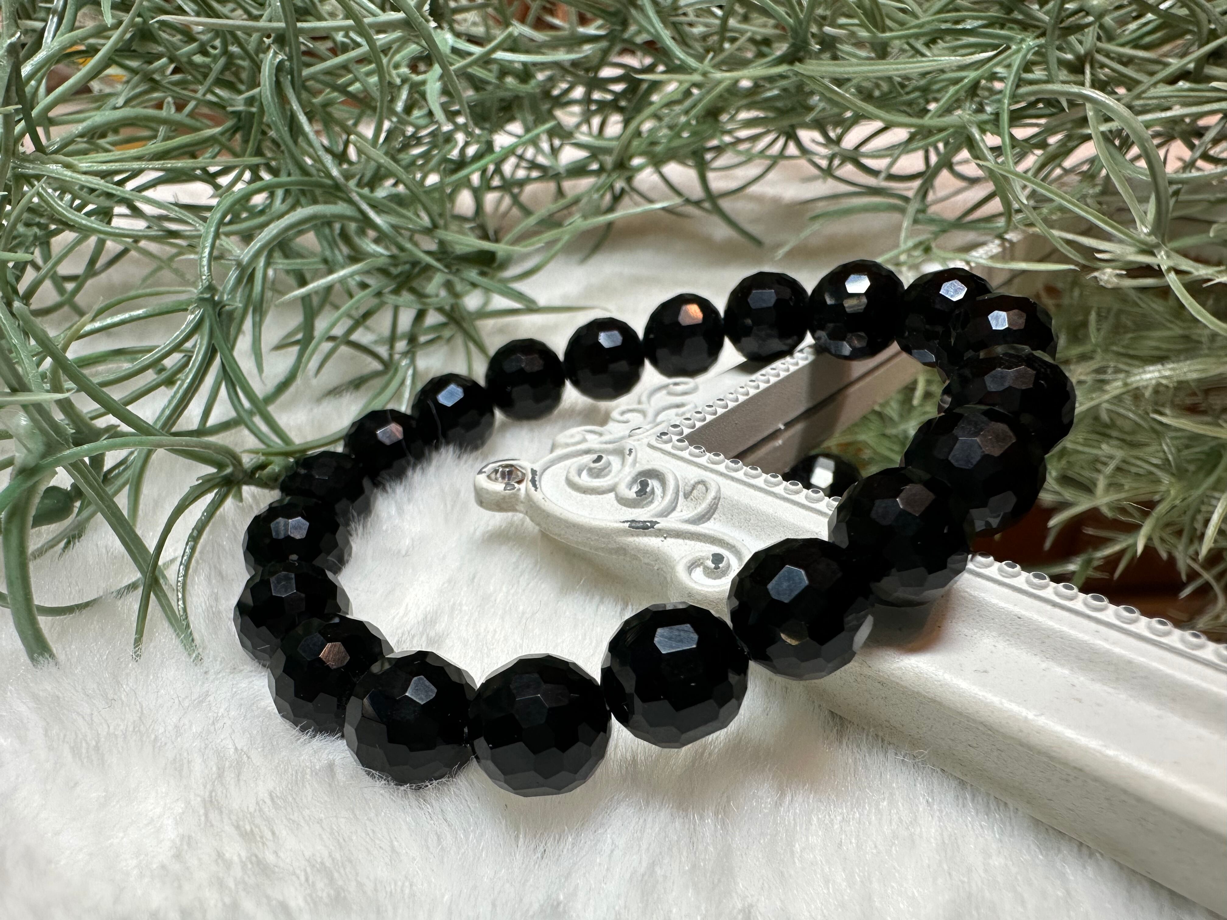 チベットモリオン(黒水晶)128面カット9㎜up bracelet♡