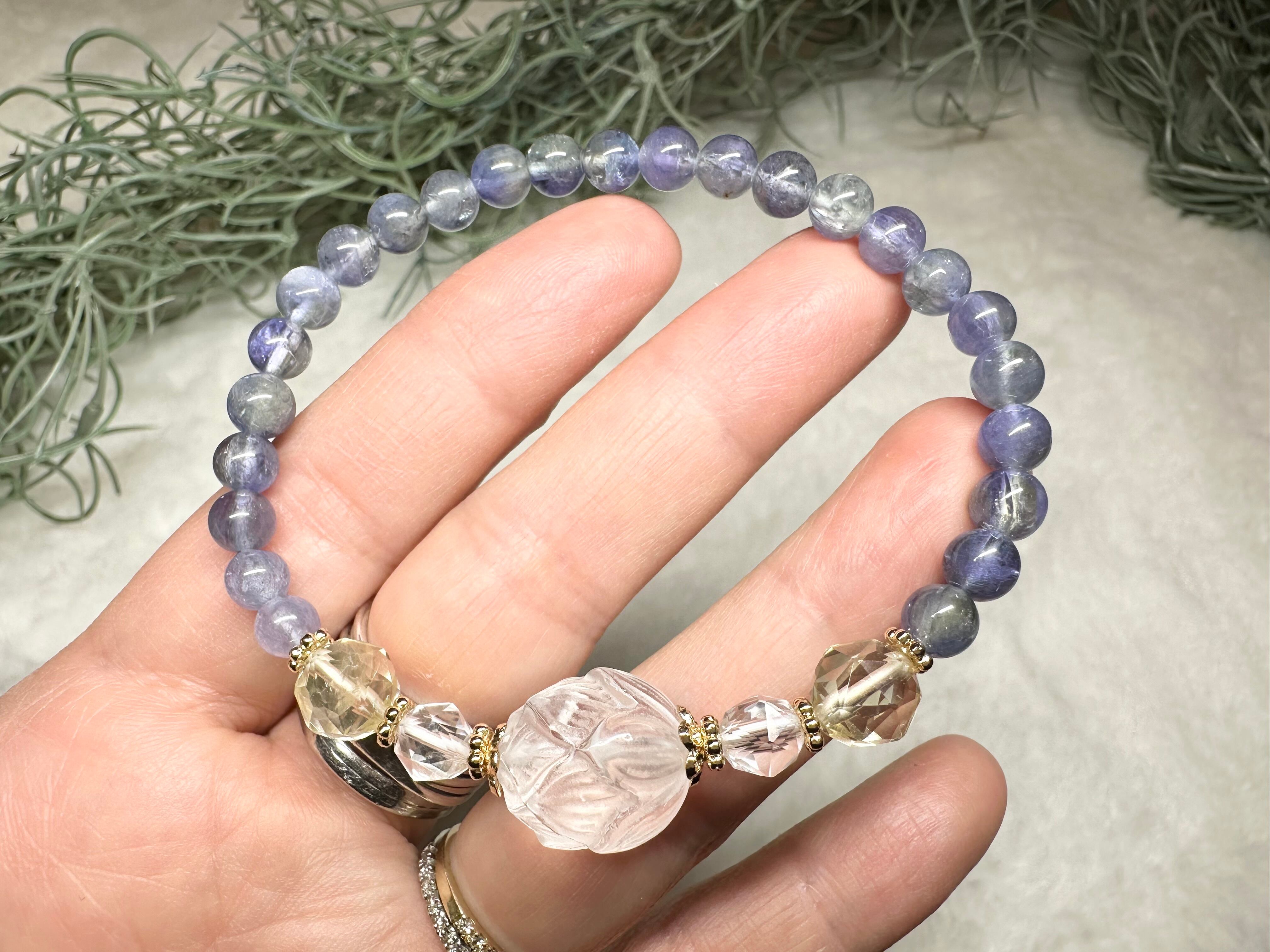 ロータスカット水晶×レモンクォーツ×タンザナイトbracelet♡
