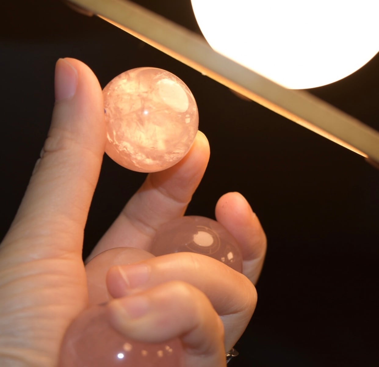 ローズクォーツ ほんのりレインボー かわいいスフィア 天然石